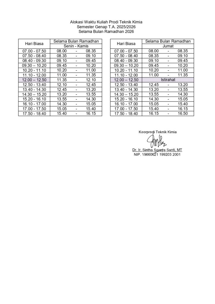 Jadwal Kuliah Selama Bulan Ramadhan 2026